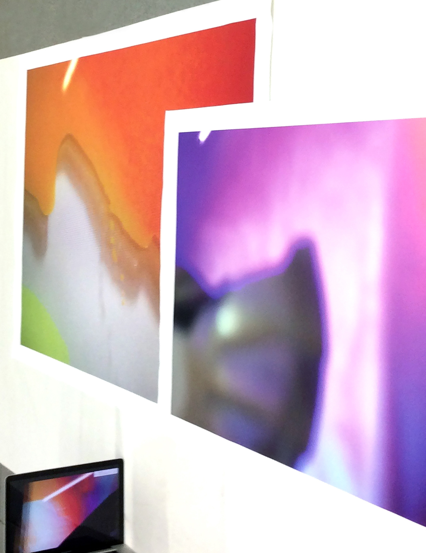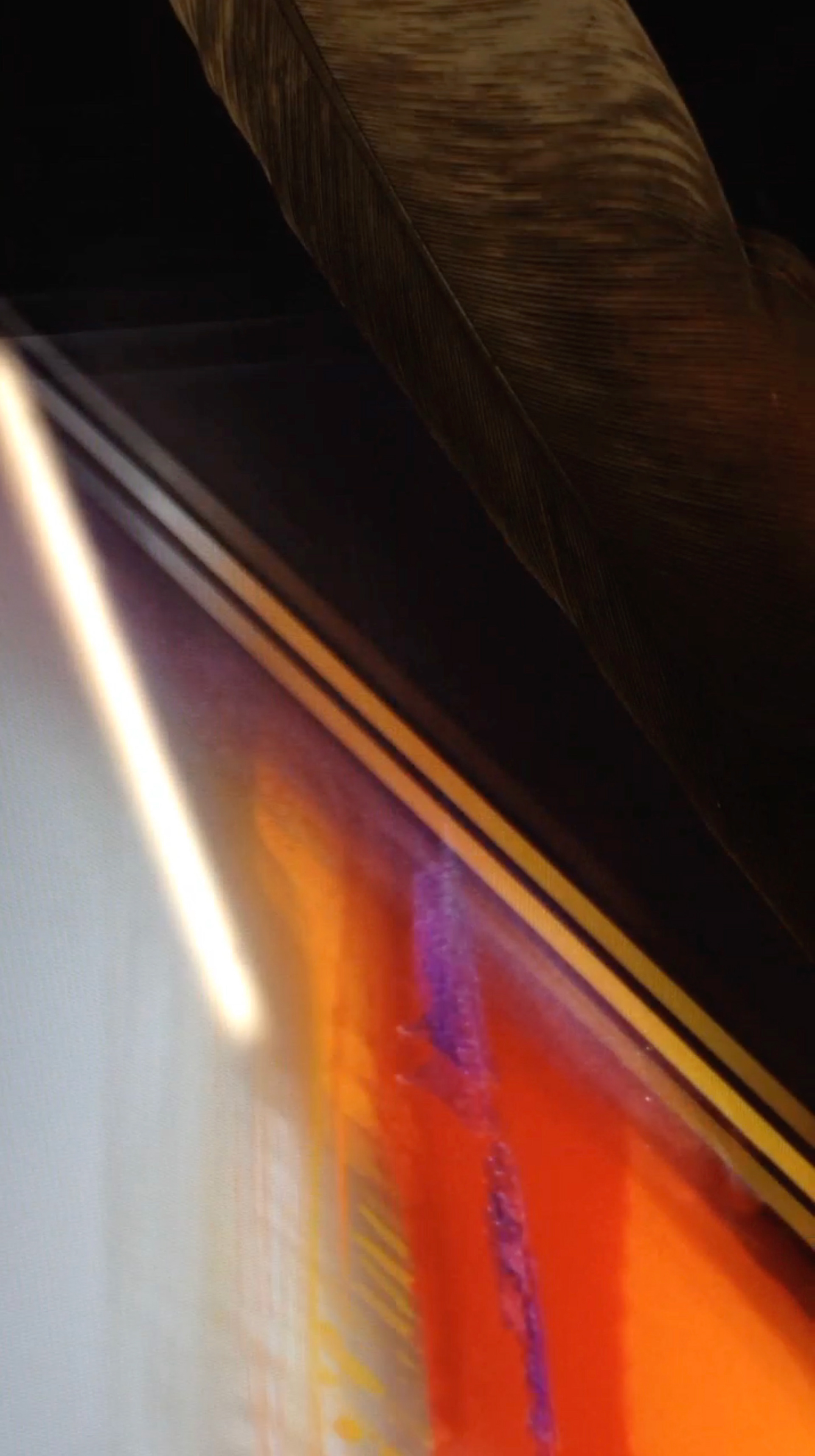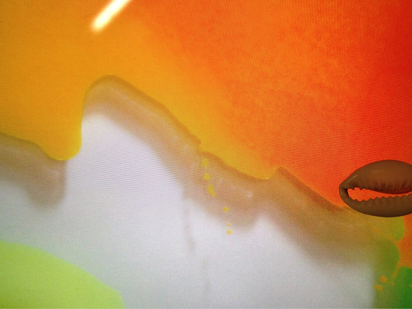 cowrie shell, agate, nautilus shell, pigeon feather, plexiglass 'paintings' (pigments, thermoplastic polymers, enamel, acrylic glass)