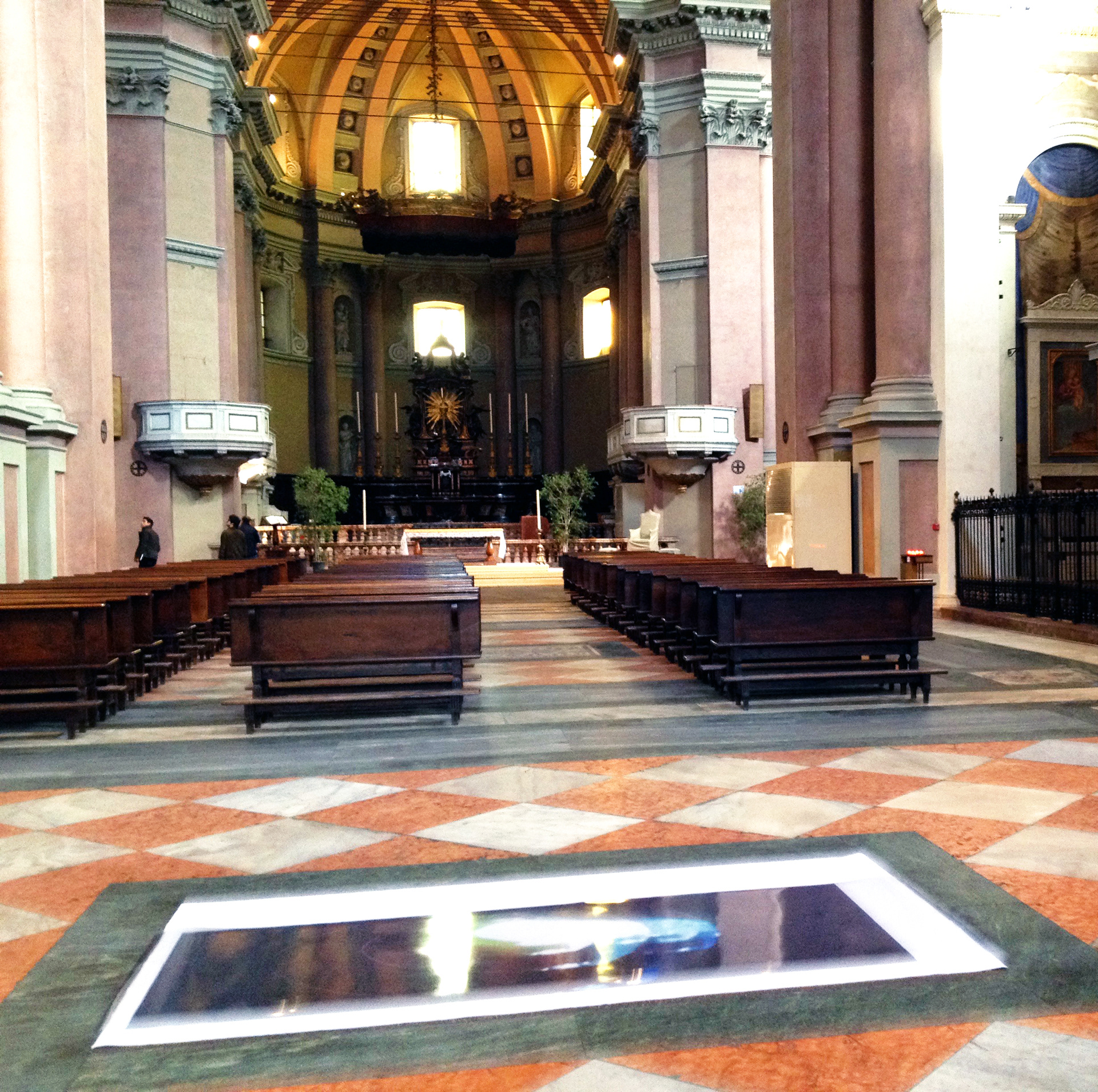 The work has a scientific basis, referencing the laws of physics to create a consideration of the existence of a channel, a sort of retroactive current, between us and ‘god’ (a thought that can be traced back to the assumption that man is the reflection of the divine image). The assumed spiritual and natural source of mankind : ‘god’, the generator of an offspring that no longer dwelling in mythical times has lost the awareness of the connection and so has become unconsciously separate, at the mental level, whilst at the level of earthly life a mark has remained in the physiognomic features that the biological fathers have passed down. The subject of the enquiry in the work is the act of this reflection, configured through two mirrors, one opposite the other, that are then reflected to infinity. Gibson positions the light between them perfectly parallel so as when one gazes inside the space an endlessly reverberating light is defined.