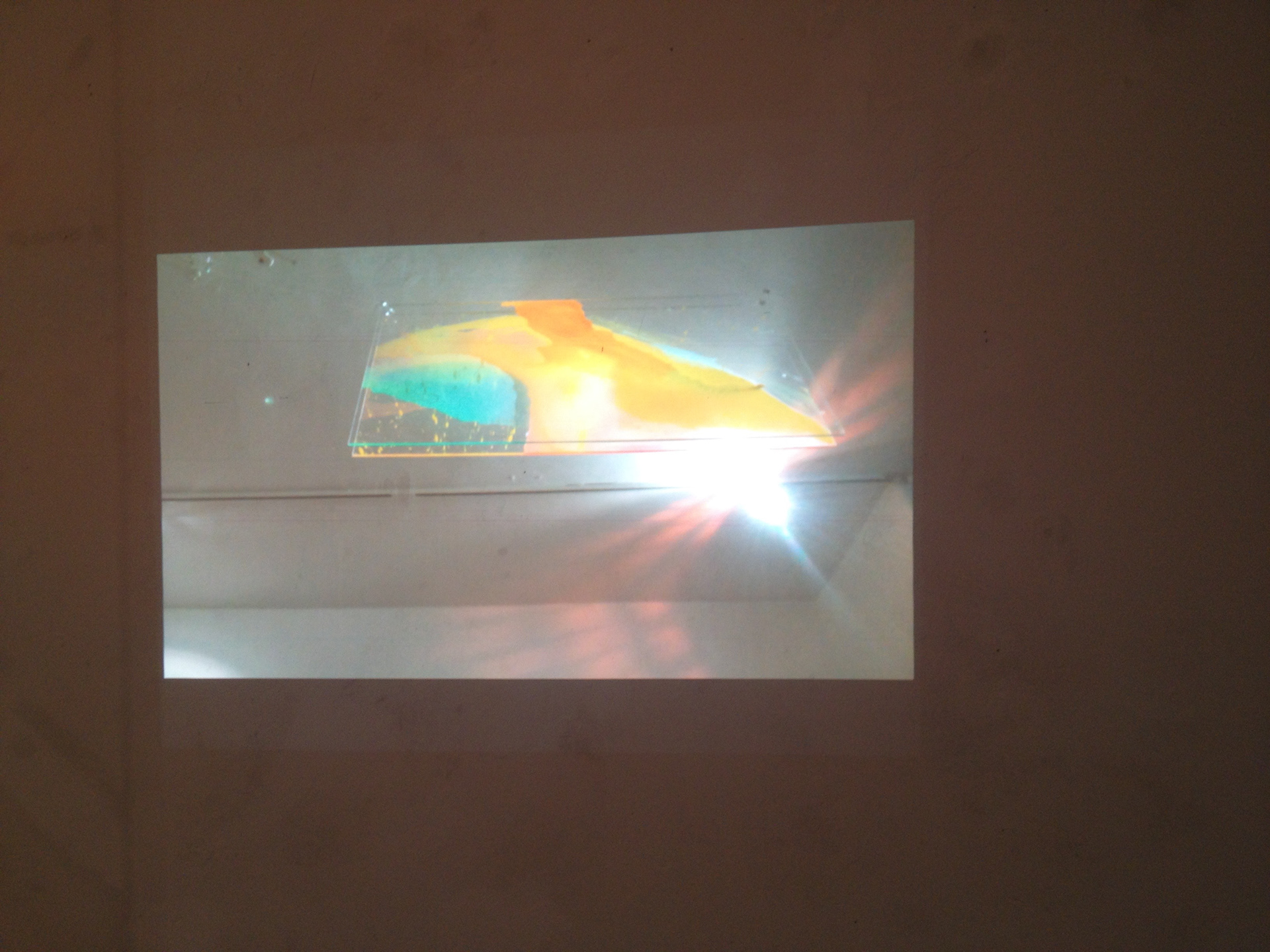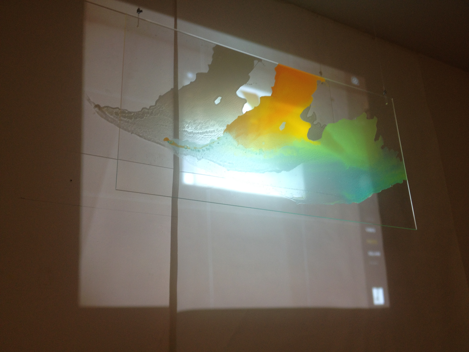 Pigments, thermoplastic polymers, enamel, acrylic glass 2 panels 50x100, POV camera, projector.