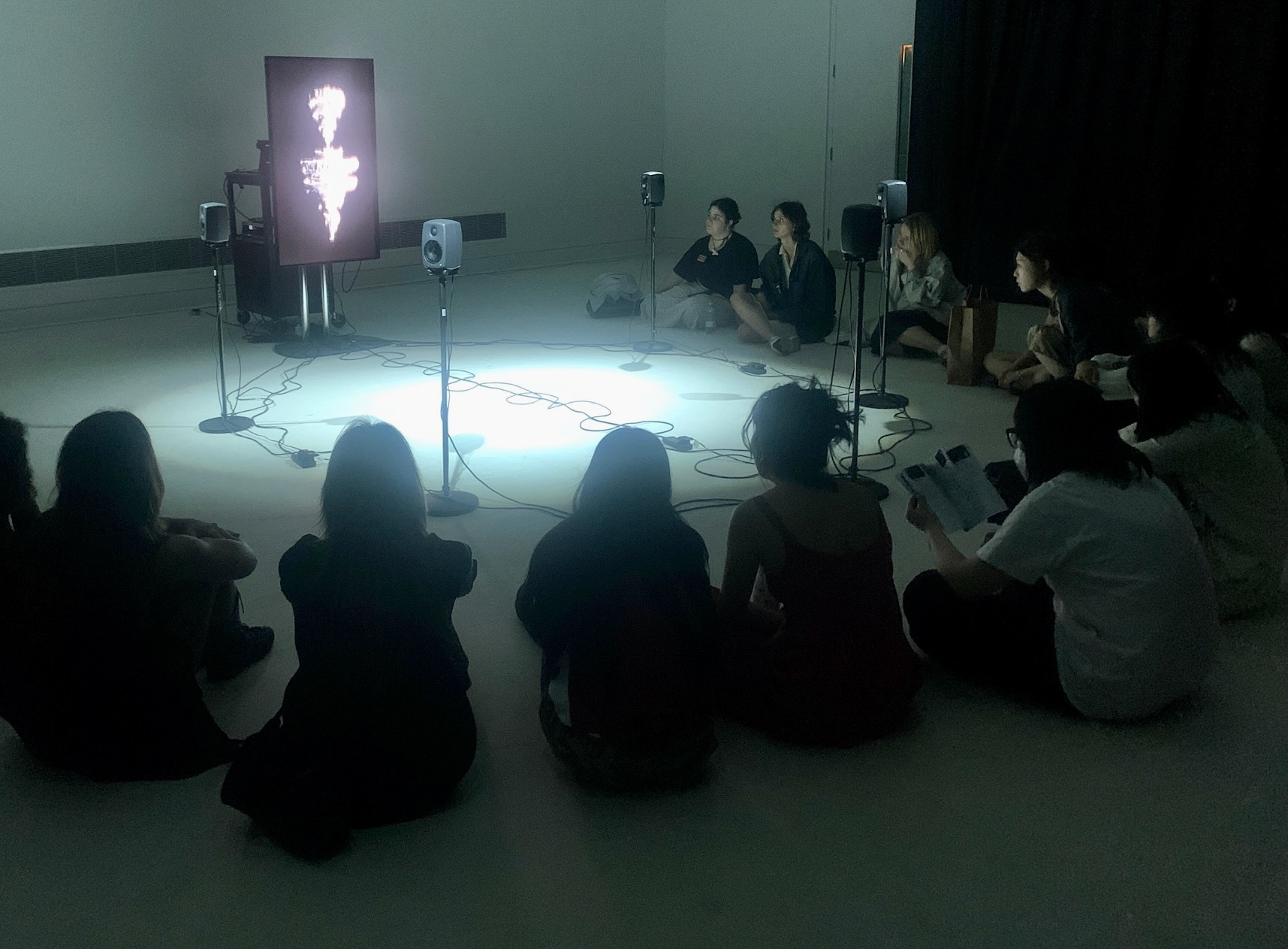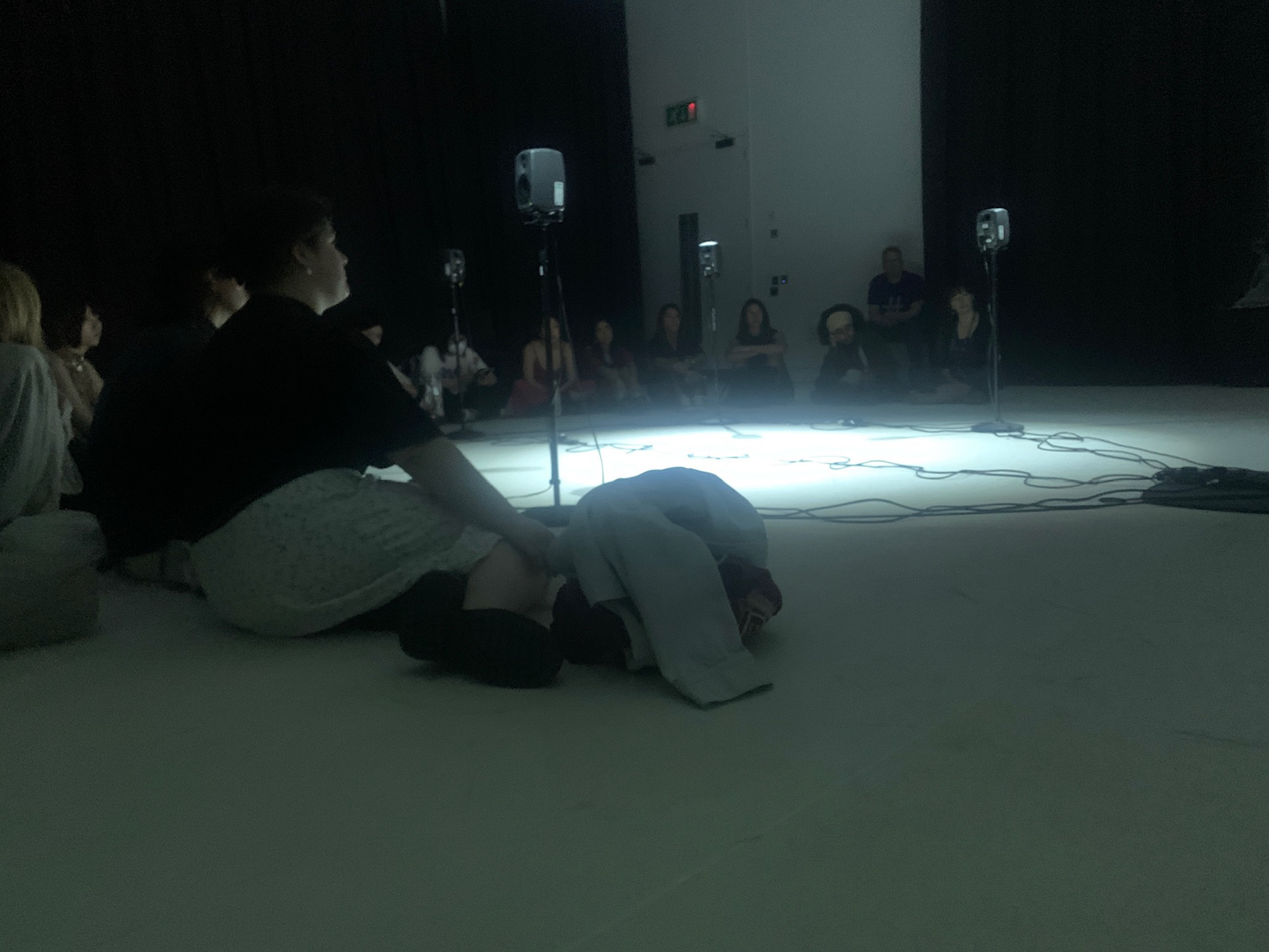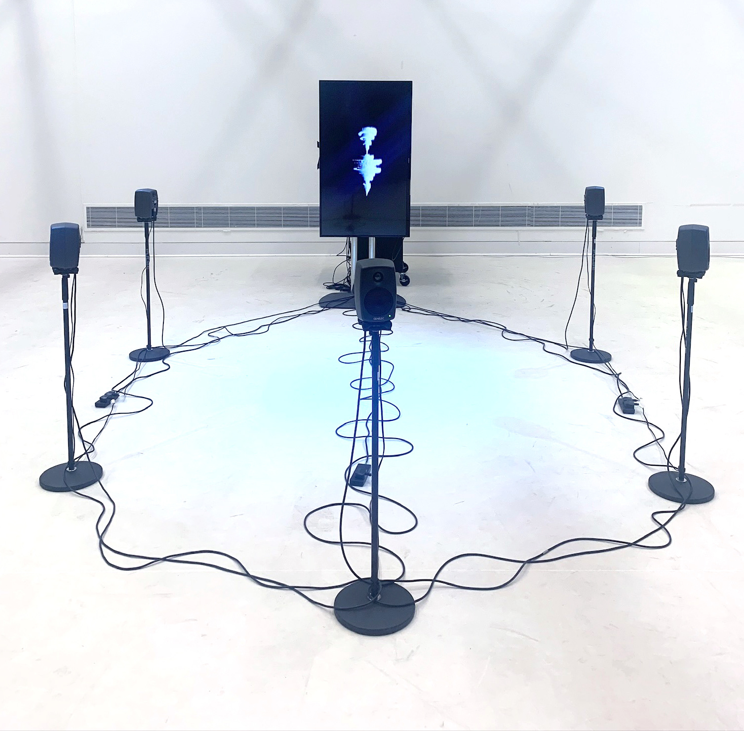KNOW NATURE (performed by Weaver) 7 min video; 5 x 7 min audio, 33" monitor; surround sound speaker system, mixer, lemon eucalyptus essential oil. 2025