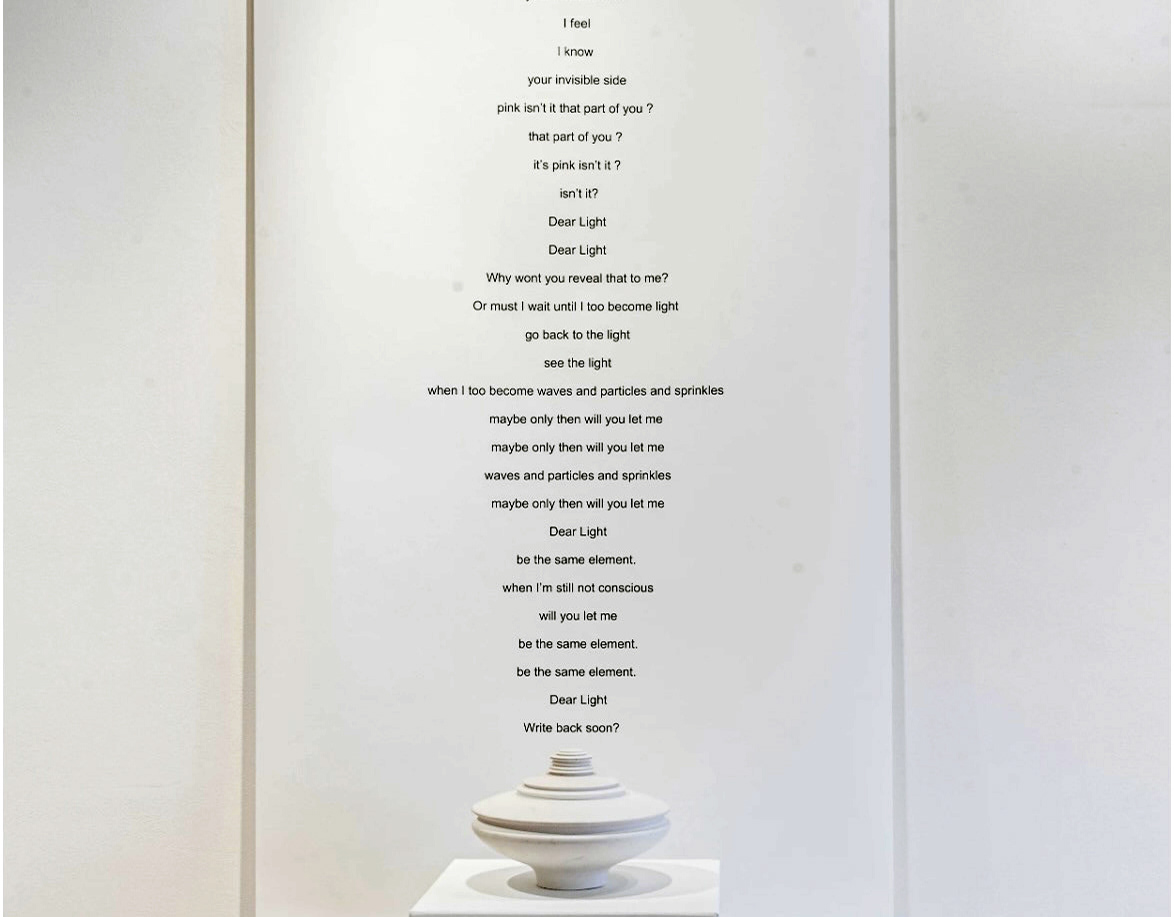 The Blind Fold is series of poems performed using a sensory deprivation tool (by avoiding the viewers gaze I aimed to disidentify from any roles and preconceptions, enabling my true self to emerge). The naming of the series obviously points to the fact the artist is blindfolded while speaking, more tellingly though it wants to point to the idea of ‘blind use of the fold’. The Blind Fold is my methodology when writing poetry - I use blind intuition when engaging with the fold, flying blind while playing with words and language that according to the philosophy of Lucretius*, are themselves a folding of the material flows of nature. (*Thomas Nails' interpretation of Lucretius' philosophical poem De Rerum Natura).