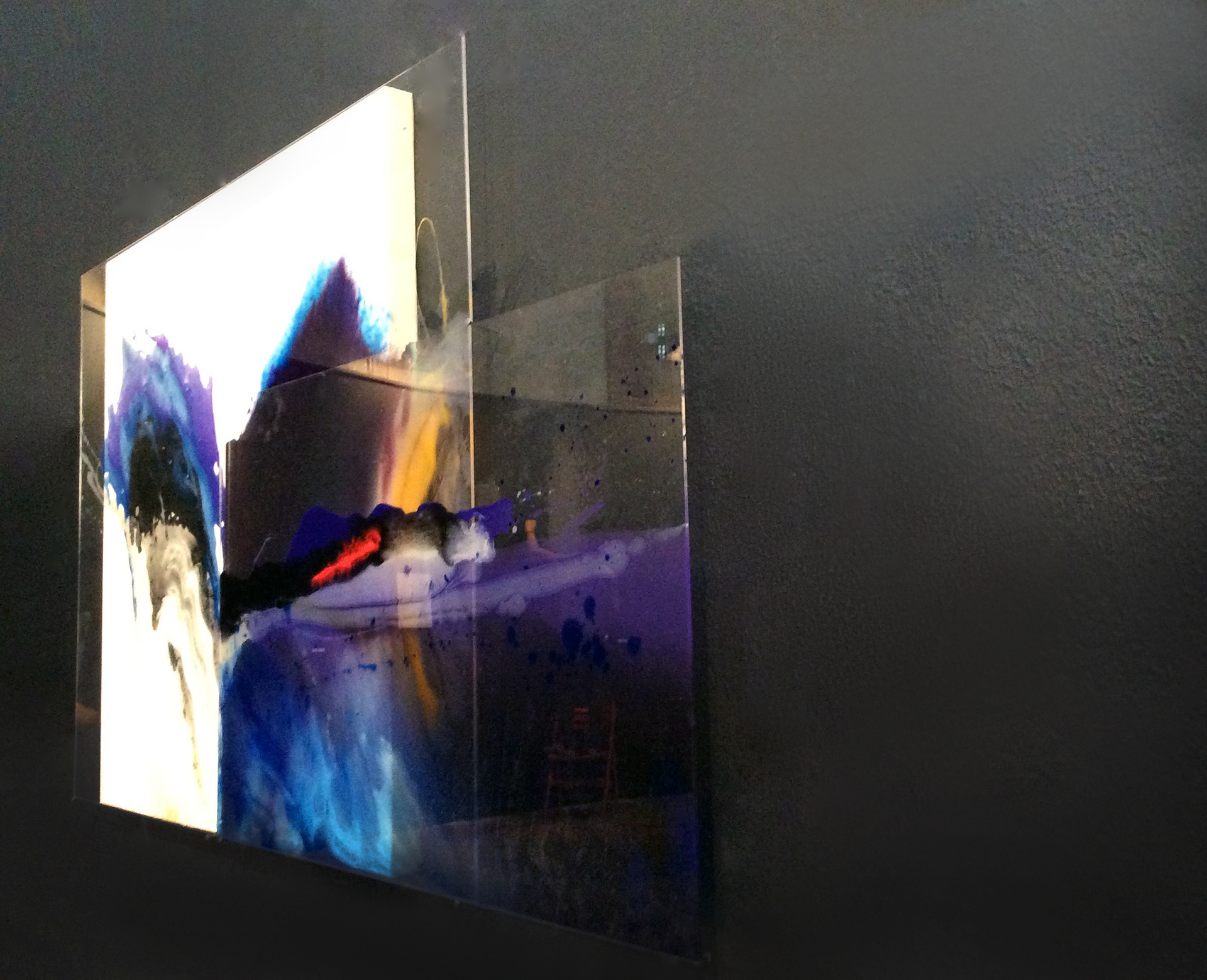 This work is the result of a philosophical investigation in which I explored painting on transparent substrate and the idea that one can rotate the work and see it as though in a mirror. This gave me an understanding of the idea of the dialectical consciousness and consequently an interest in the philosophy of becoming. My writings on this were published as a paper in the proceeding of International Association of Empirical Aesthetics.