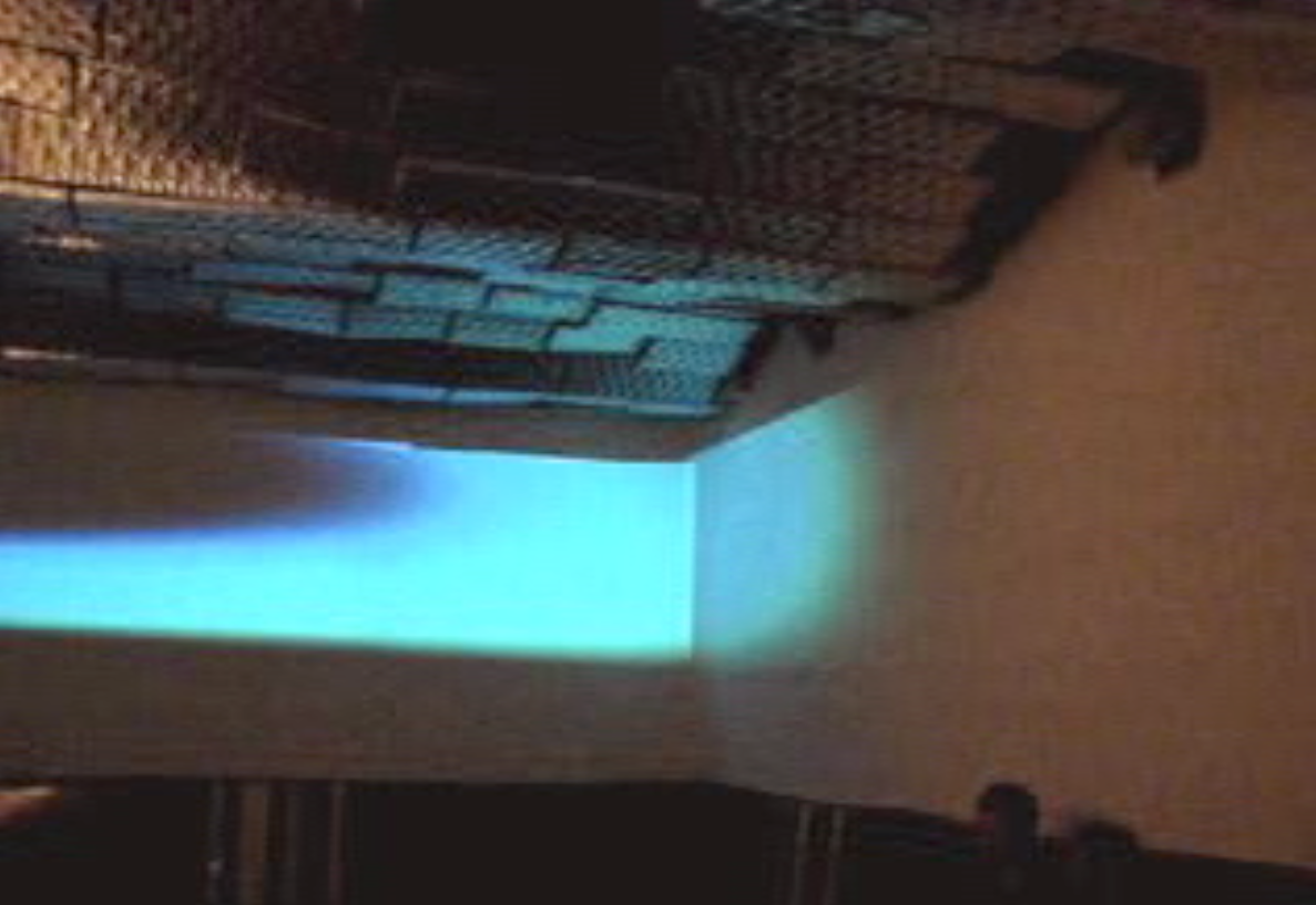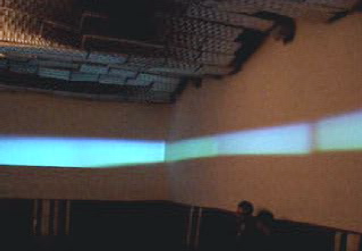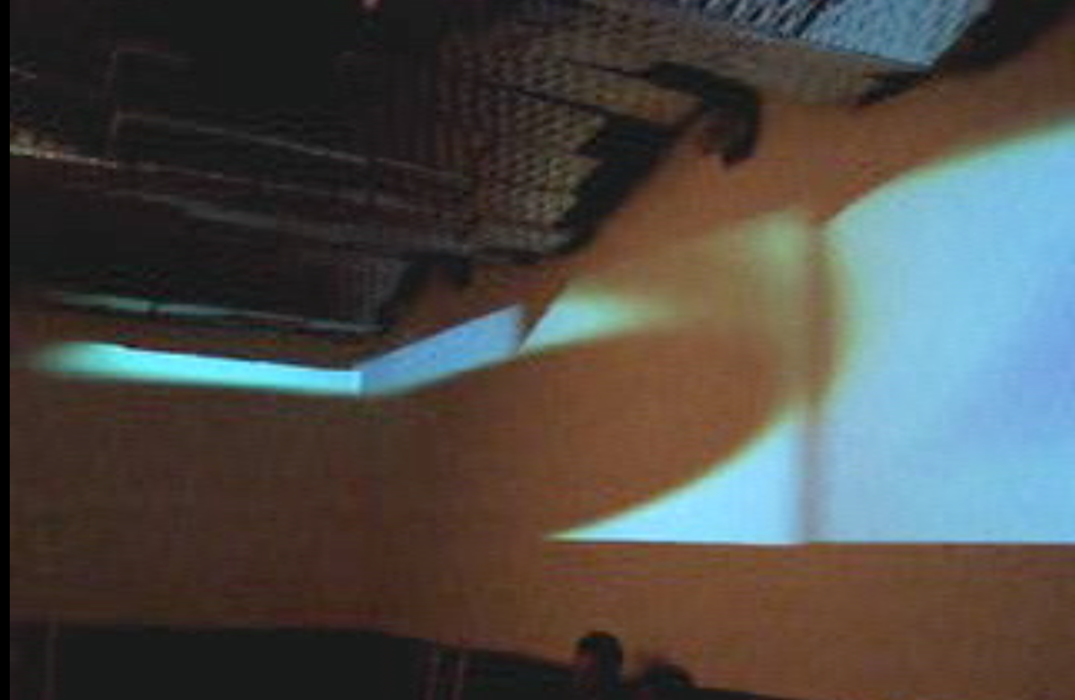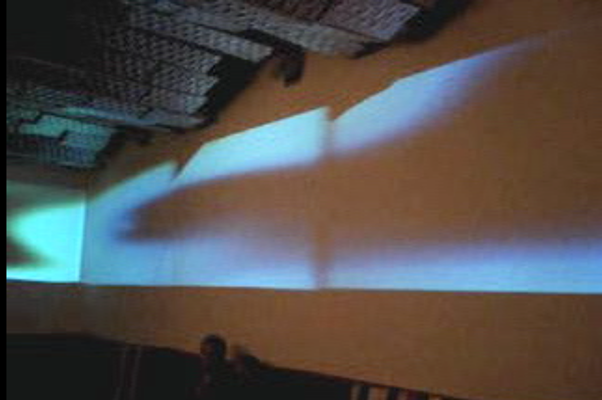 This work used a 6 channel multi-display system to wrap the angled corner of the room with a moving flow